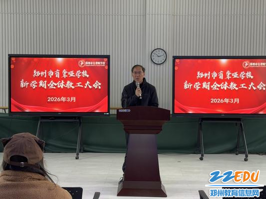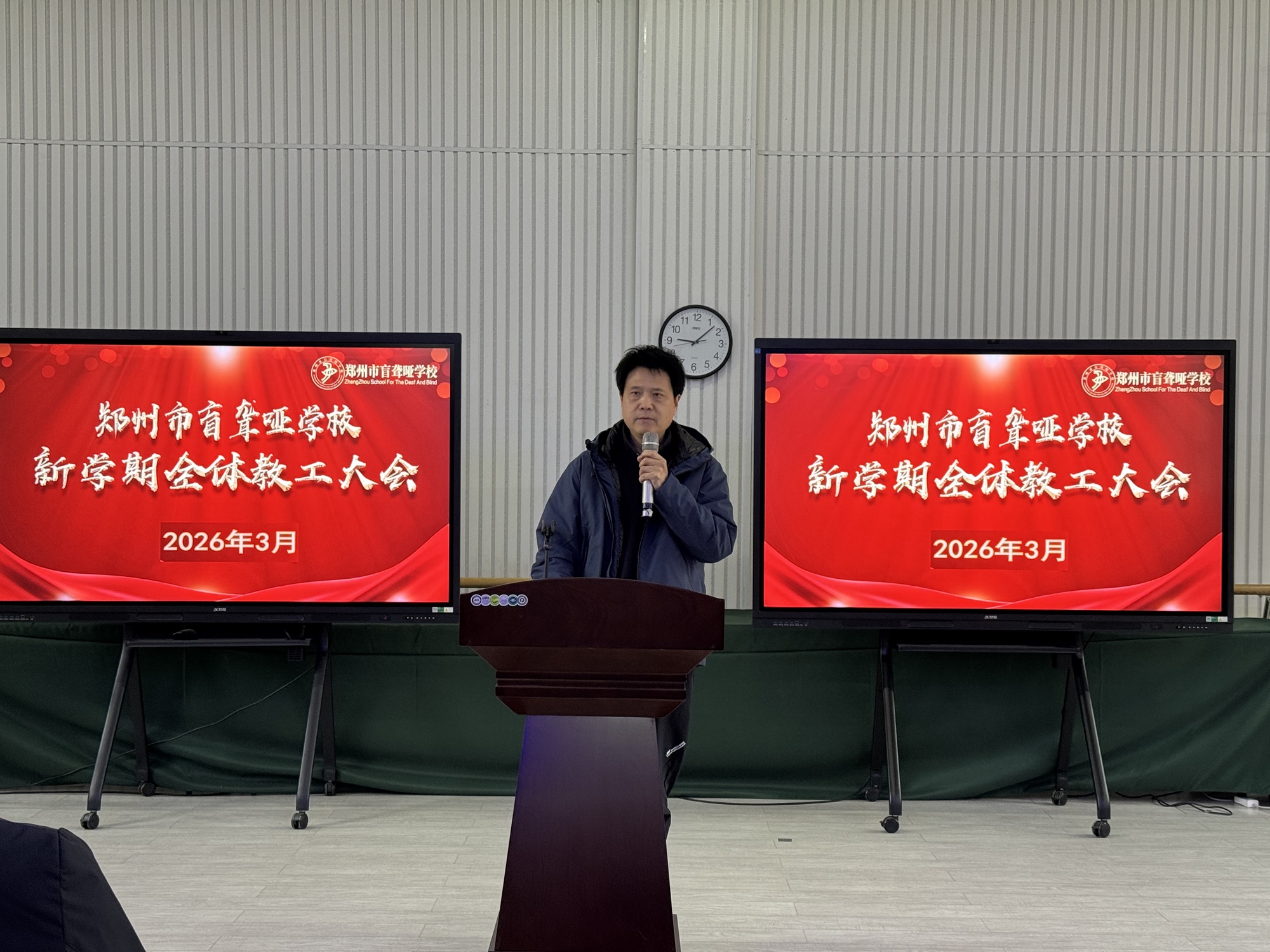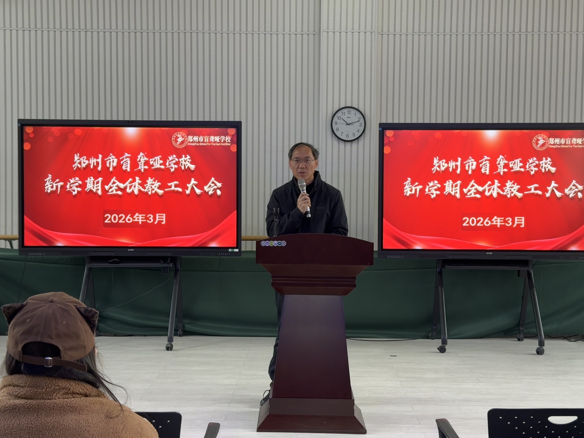 2026年3月5日,郑州市盲聋哑学校新学期全体教职工大会召开,学校领导班子与全体教职工齐聚在二楼会议室,明晰工作方向,凝聚奋进力量,为新学期各项工作有序开展奠定坚实基础。