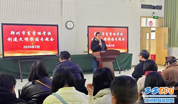 郑州市盲聋哑学校副校长孙建伟对文明创建工作作统筹安排
