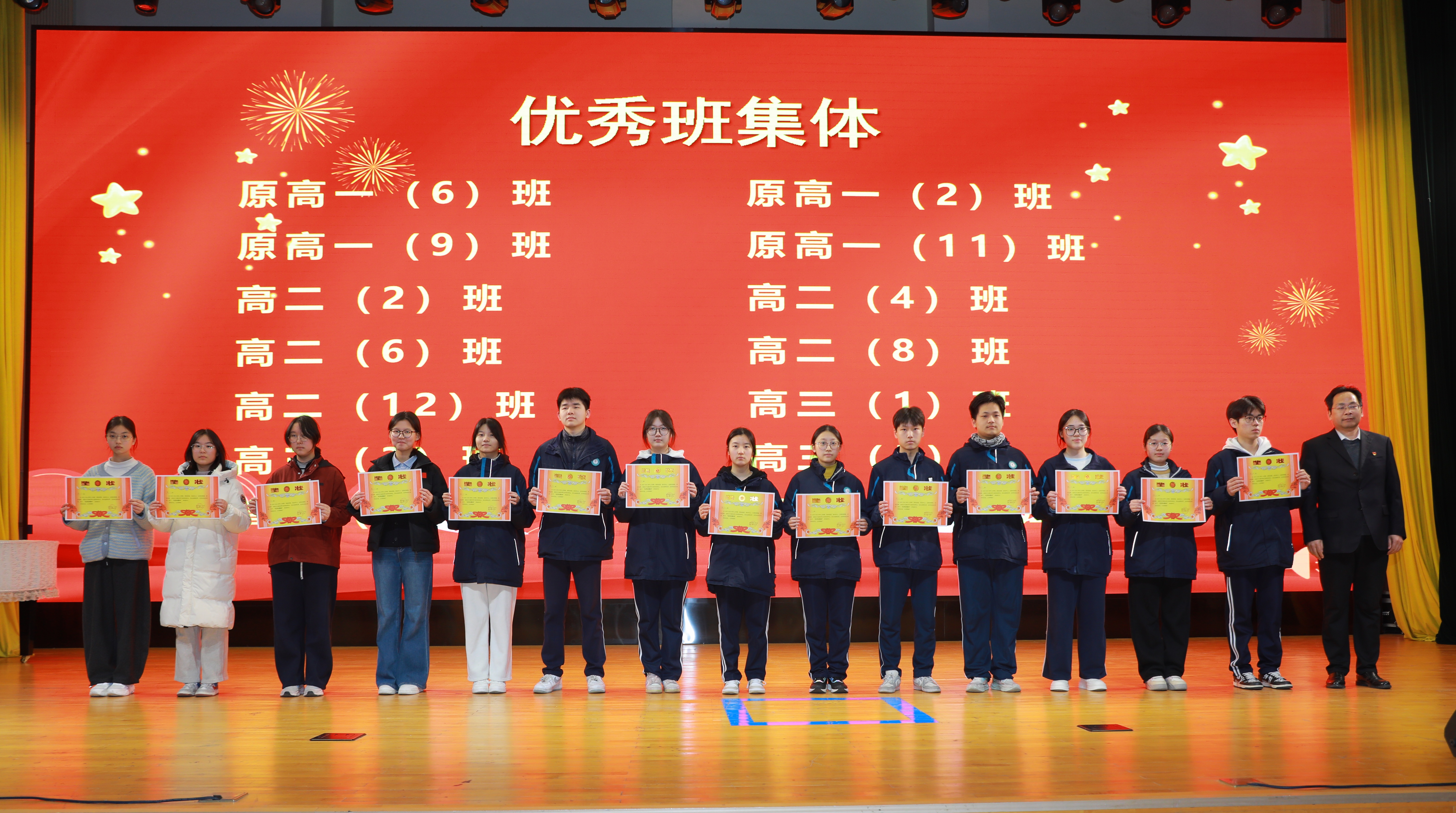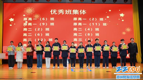 郑州市第十二中学党委副书记、校长周铭为优秀班集体颁奖