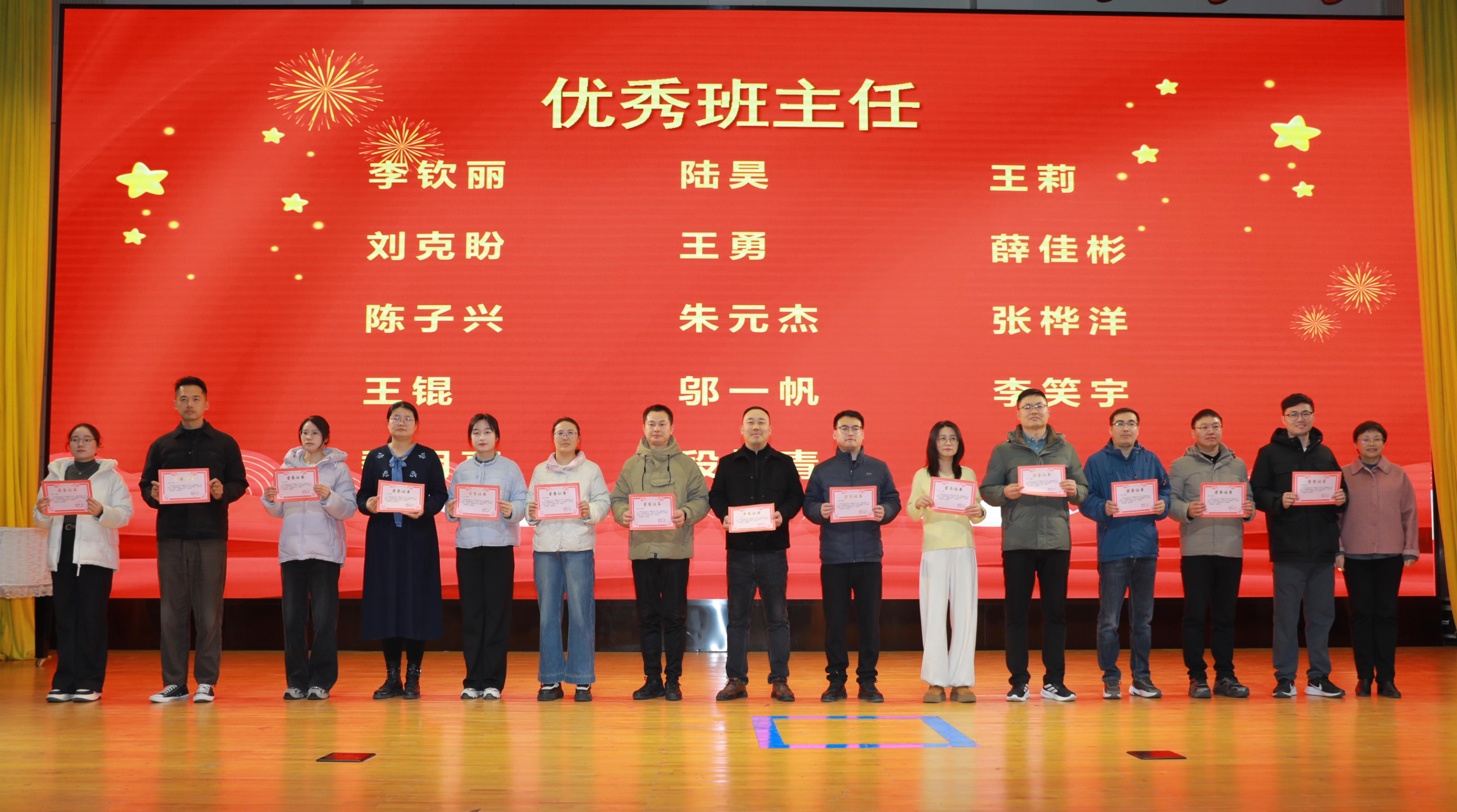 典礼在庄严的国歌声中拉开帷幕。学校副校长史克威宣读表彰决定,学校党委书记陈立新,党委副书记、校长周铭为上学期表现突出的优秀班集体、优秀班主任及奖学金获得者颁发荣誉证书。掌声阵阵,榜样的力量激励着在场每一个人。
