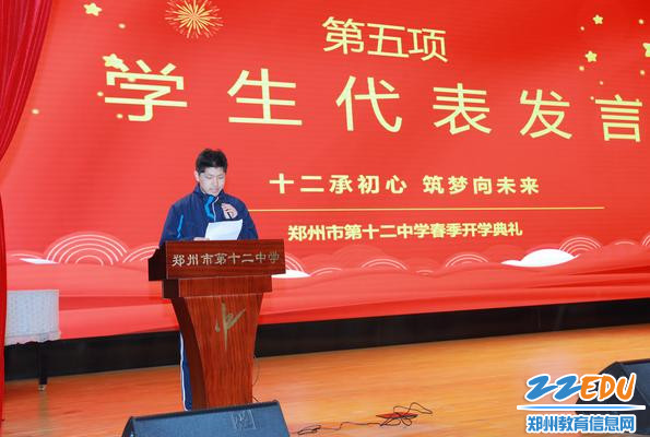 郑州市第十二中学优秀学生代表游天乐发言