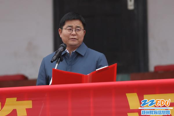 随后,郑州九中校长袁伟民作开学致辞。他以惊蛰节气为喻,结合2026年米兰冬奥会谷爱凌的坚守、春晚机器人的创新惊艳、《飞驰人生3》的实干精神,向全体师生传递“学习、实干、创新”的制胜逻辑。袁伟民寄语全体师生,学习是永恒主题,要以坚持积累筑牢成长根基;实干是最强力量,要以脚踏实地奔赴梦想;创新是不竭动力,要以与时俱进开拓新局。他强调,本学期是名副其实的“超短学期”,希望全体师生收心凝神、聚力奋进,以最佳状态投入到教与学中,不负时光、不负韶华。