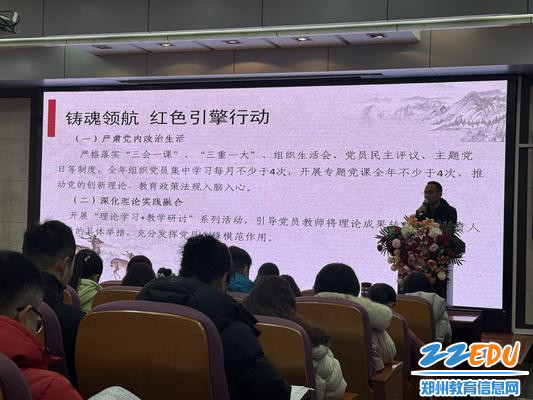 郑州市第八中学党委副书记、新校区执行校长郭晓军汇报新校区的工作部署