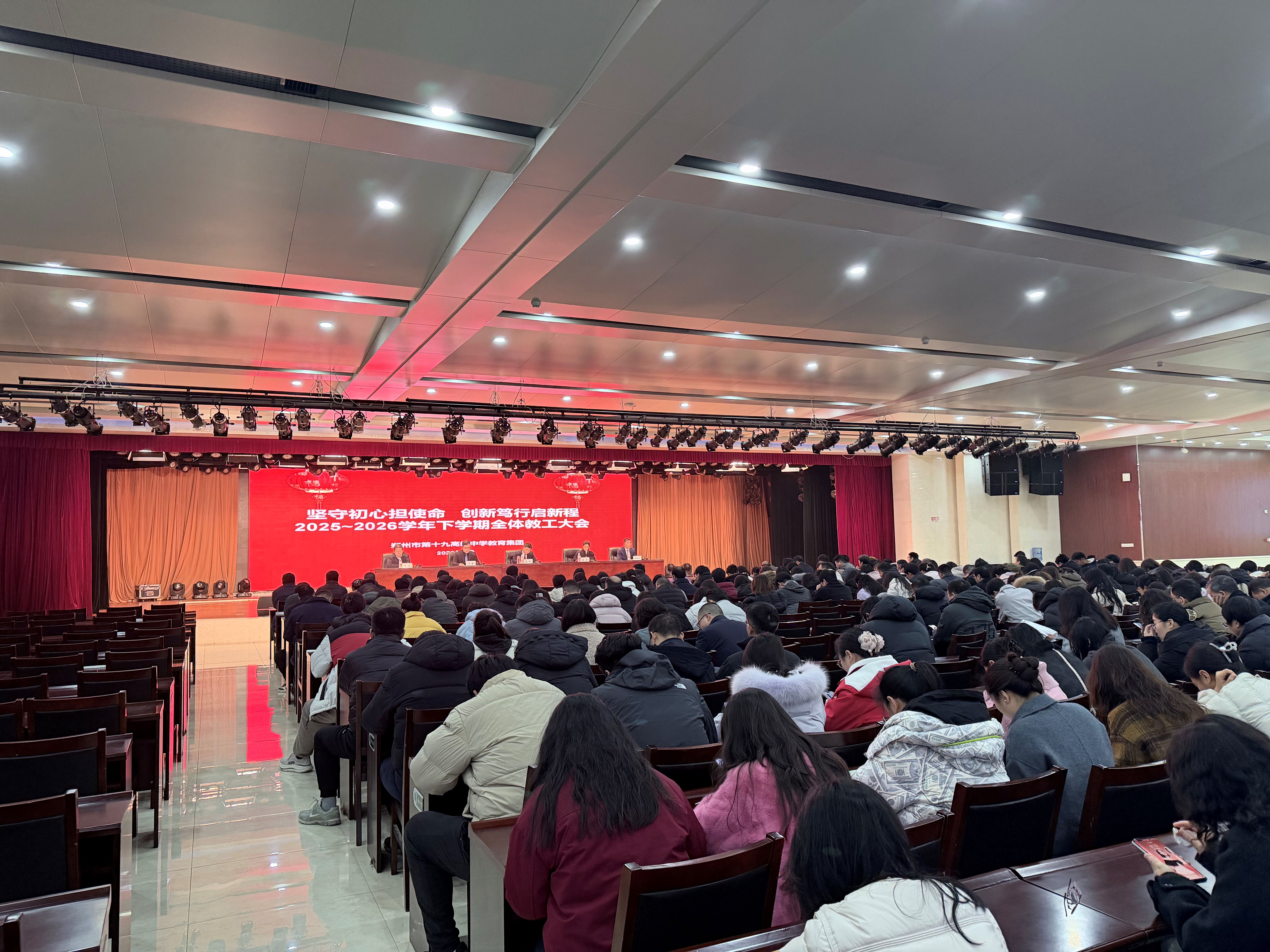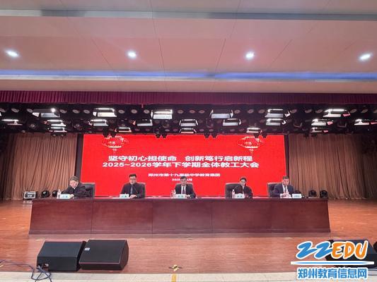 2026年3月4日上午,郑州市第十九高级中学教育集团召开2025-2026学年下学期全体教工大会暨全体班主任会议,以“坚守初心担使命,创新笃行启新程”为主题,全面部署新学期工作。会议由学校副校长李伏庆主持。