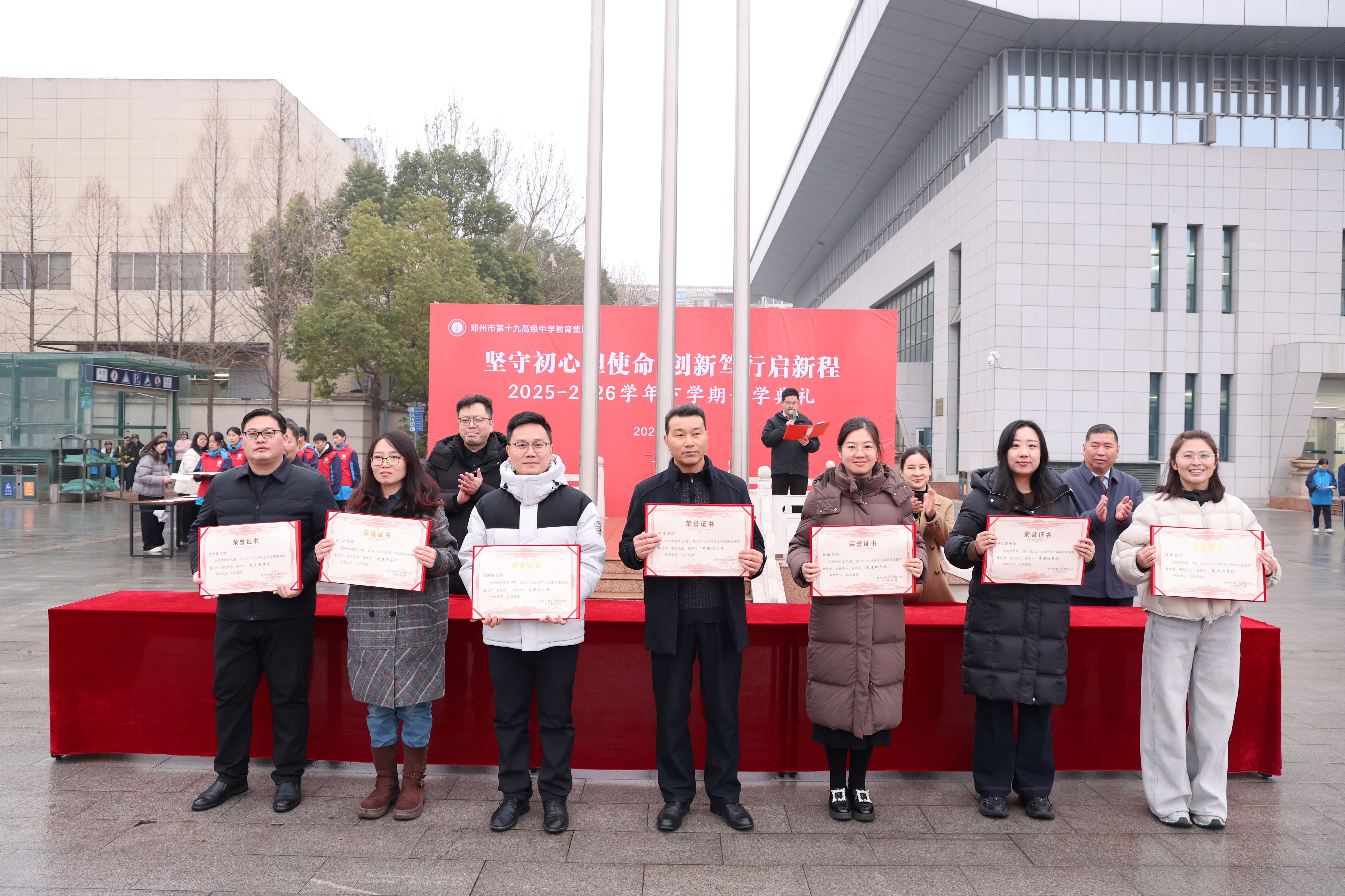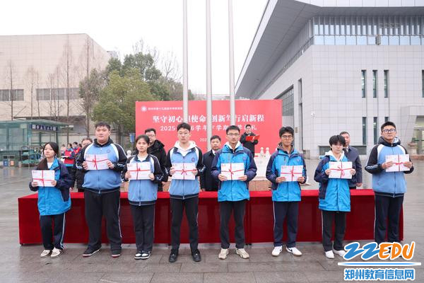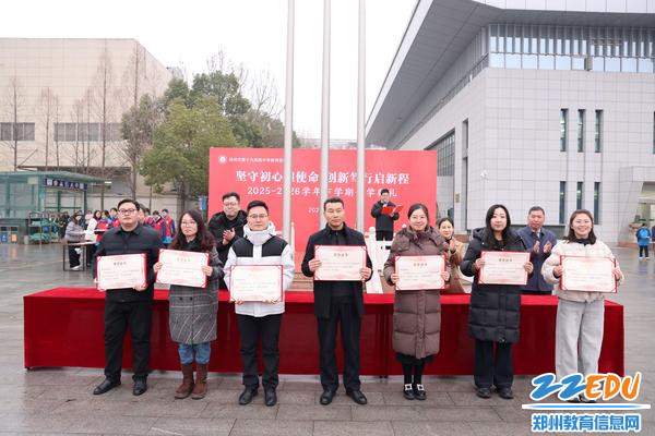 典礼的表彰环节庄重而热烈。郑州市第十九高级中学副校长李伏庆登台宣读获奖人员名单,为表彰先进、树立榜样,学校对上学期涌现出的先进个人及先进班集体进行表彰。校领导共同为获奖同学与优秀班主任颁发荣誉证书。这份肯定既是对过往努力的嘉奖,也激励着全体学子以榜样为力量,以马不停蹄的姿态追逐梦想。