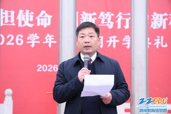 升旗仪式后,郑州市第十九高级中学党委副书记、校长张浩为全体师生送上新学期寄语。张浩紧扣时代脉搏,结合当下科技发展前沿、国际交流新动态等时事热点,立足马年奋进向上的时代基调,勉励全体学子胸怀家国、放眼未来,以策马扬鞭的锐气、脚踏实地的定力,在求学路上勇攀高峰;寄语全体师生以昂扬之姿、实干之行,不负韶华、不负时代,在新的学期书写属于郑州市第十九高级中学的精彩篇章。
