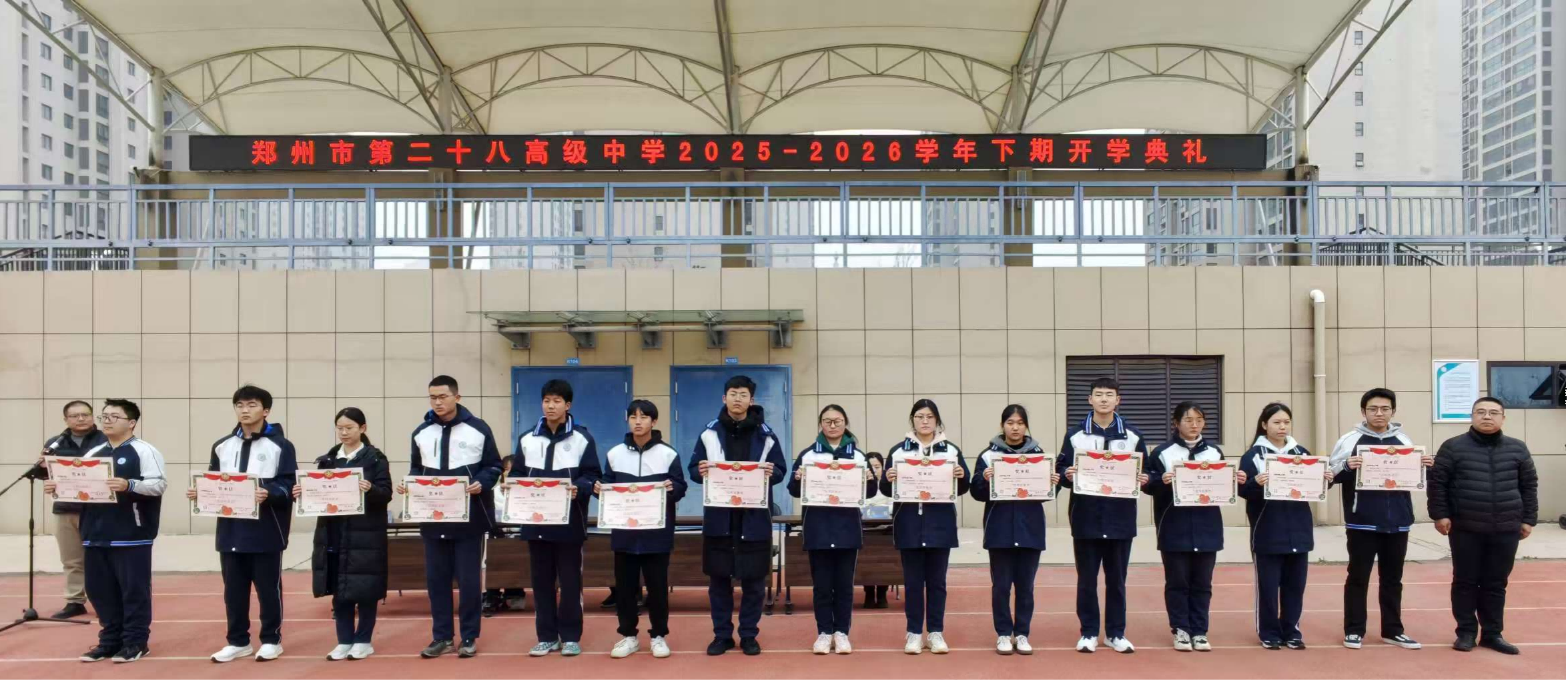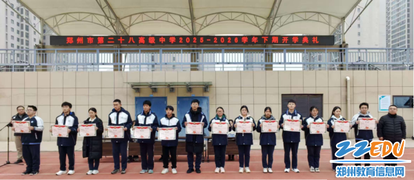 郑州市第二十八高级中学举行2026年春季开学典礼,表彰优秀个人和集体