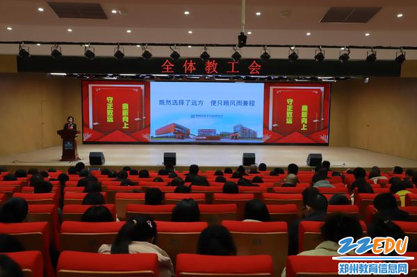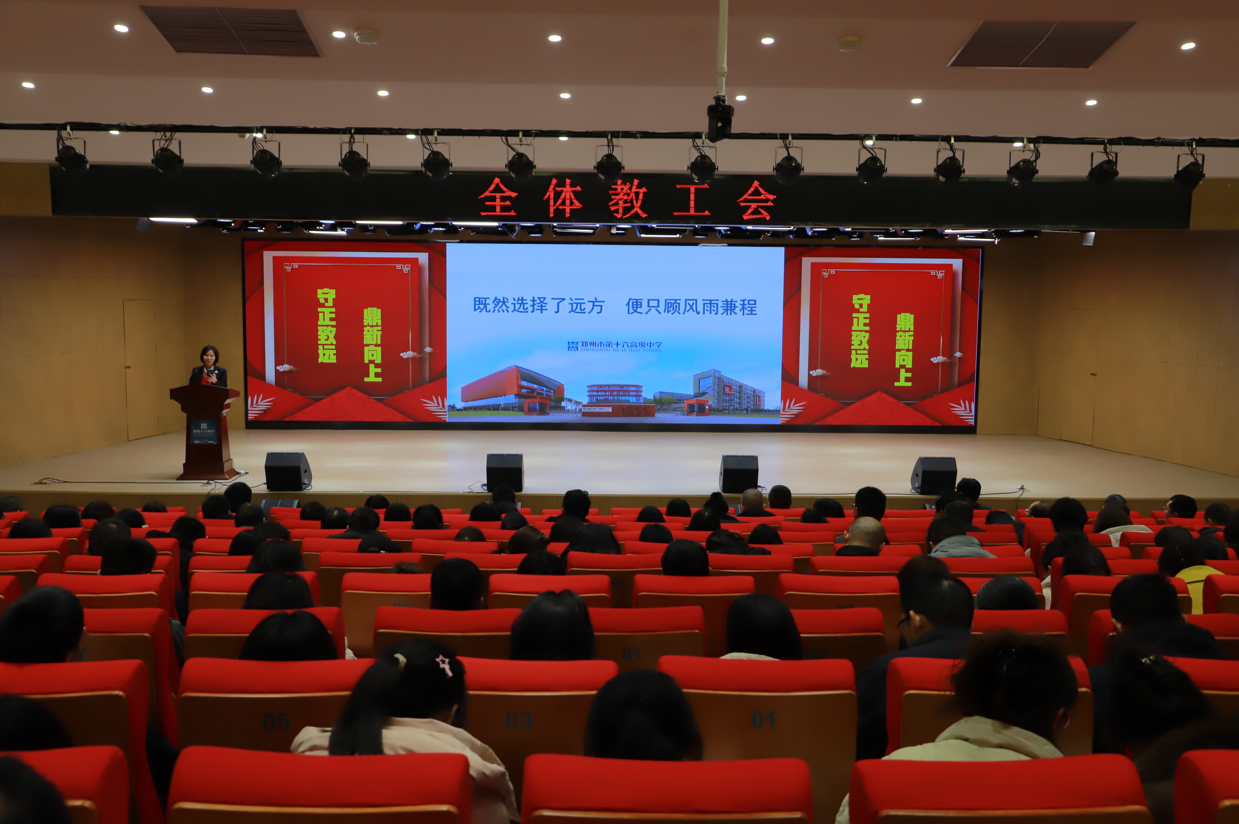 3月4日上午,郑州市第十六高级中学召开新学期全体教职工大会,校领导班子成员与全体教职工齐聚一堂,共同谋划新学期教育教学工作。学校副校长贾红超、陈树辉分别就教学安排与校园安全工作作出部署;学校校长王彦荣以“既然选择了远方,便只顾风雨兼程”为主题发表讲话,为新学期工作锚定方向,为学校高质量发展注入新动能。