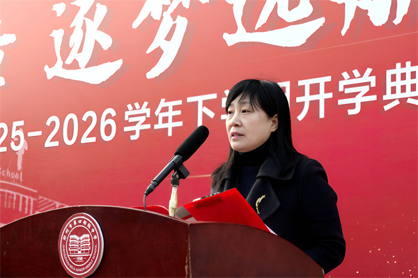 教师代表房淑杰用“龙马精神”为同学们加油鼓劲。她希望大家“做一匹有理想的‘追梦马’”,心里装着远方;“做一匹有品德的‘文明马’”,把规矩和礼貌装进行囊;“做一匹有本领的‘奋进马’”,在课堂上、书本里悄悄积蓄力量;“做一匹有活力的‘健康马’”,跑起来、笑起来,向阳生长。