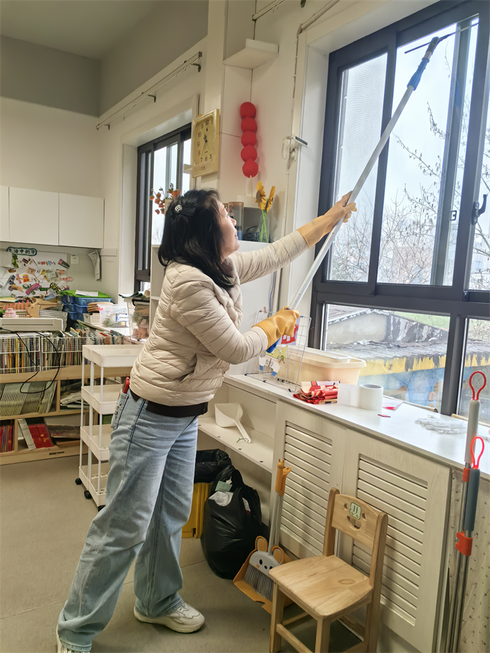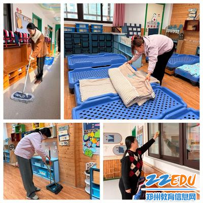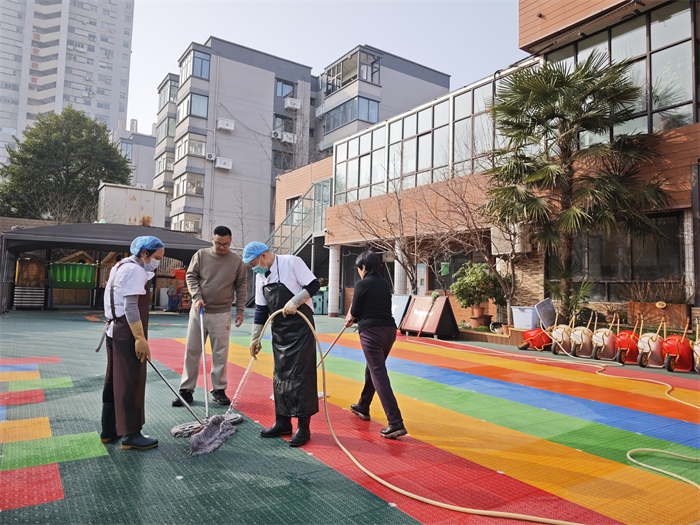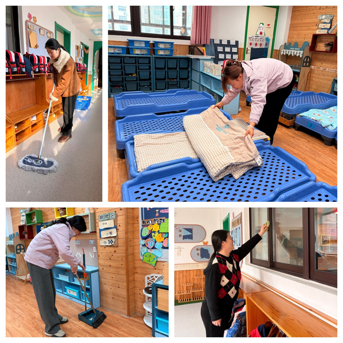 会议结束后,全体教职工迅速投入到开学前的准备工作中。大家对班级活动室、功能室、户外活动区域以及厨房等场所进行了全方位、无死角的清理与消毒。经过大家的共同努力,幼儿园环境焕然一新,窗明几净,为孩子们新学期的健康归来营造了温馨、舒适、安全的生活游戏环境。