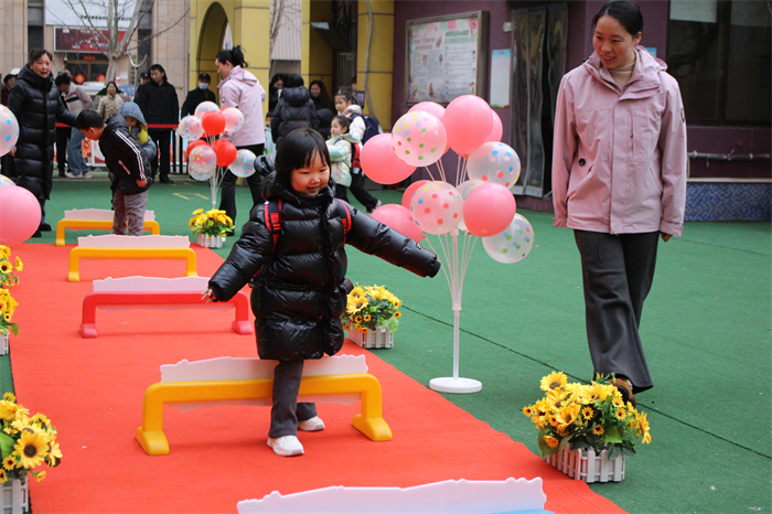 清晨的校园春意盎然、暖意融融。精心布置的入园通道、缤纷花朵与背景相映成趣,红毯与成长跨栏营造出浓厚的开学氛围。教师们以饱满的热情和温暖的笑容迎接每一位幼儿归来,幼儿在教师的引导下有序入园,跨过寓意“步步生花”的跨栏,踏上象征希望的成长红毯,在“点春颜”创作区用五彩颜料绘出春日小花,以灵动的方式为新学期写下浪漫开篇。