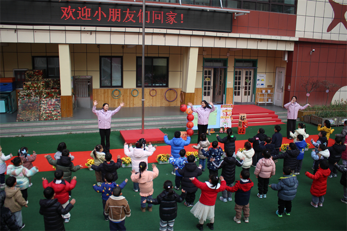 教师们以温暖的笑容欢迎孩子们回家