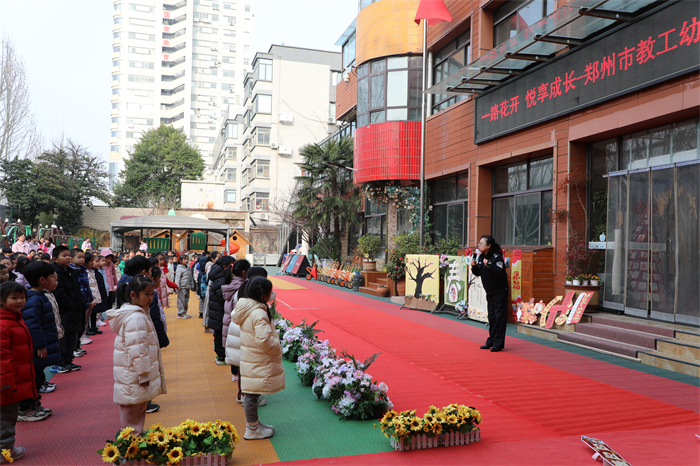 安全是成长的底线,守护是永恒的责任。郑州市公安局金水分局文化路派出所民警常露带来“开学安全第一课”,通过情景讲解、趣味互动等形式,向幼儿普及入园安全、活动安全、饮食安全等常识,引导幼儿增强自我保护意识,提高安全防范能力,为新学期健康成长筑牢安全屏障。