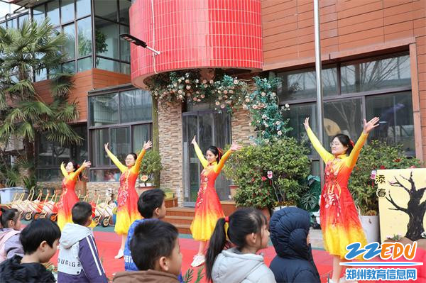 教师们用《一路花开》舞蹈展现出积极的精神风貌