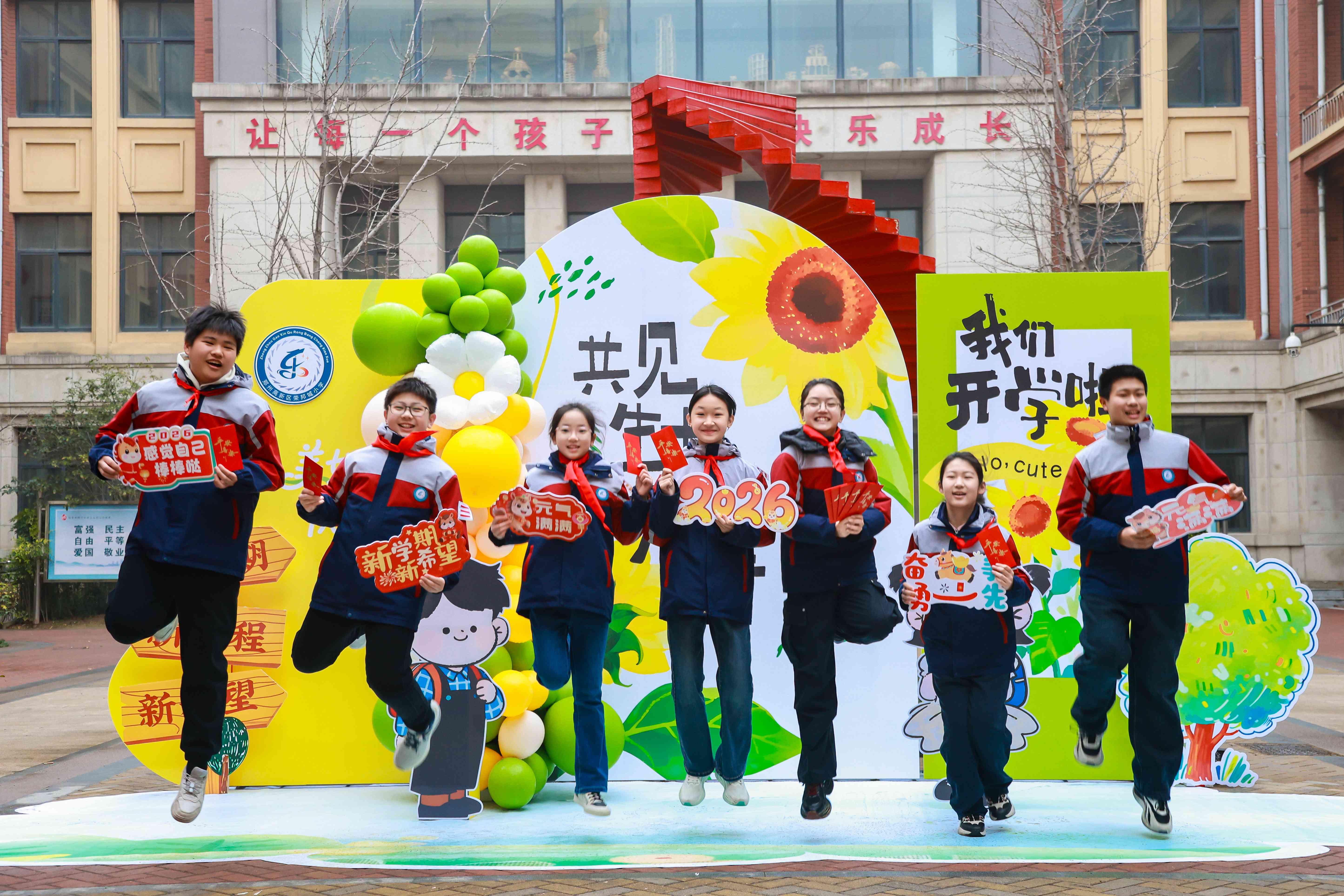 3月5日,郑州高新区各中小学、幼儿园正式开启新学期,沉寂许久的校园被欢声笑语“唤醒”。各学校化身“宠娃达人”,解锁N种创意仪式感,公安、办事处等多部门联动护学,用温情与责任,给孩子们送上了一场充满惊喜与安心的开学礼遇,满心欢喜奔赴新程。