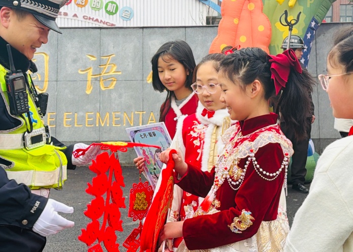 郑州高新区外国语小学向坚守岗位、护航平安的交警叔叔送上新春祝福与崇高敬意