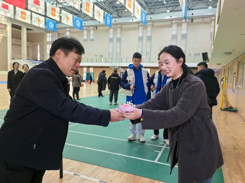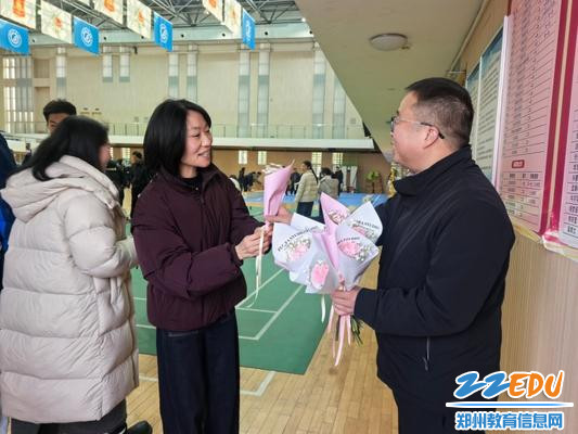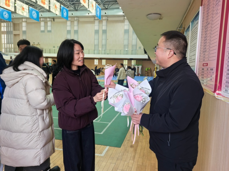 校领导班子为女教职工敬献鲜花,笑意融融间传递节日的温暖与敬意。