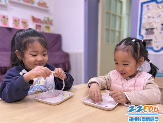 制作手链活动现场暖意融融,五颜六色的串珠在孩子们的小手中灵动跳跃。孩子们睁着圆圆的大眼睛,小心翼翼地捏起串珠,穿进细绳,还会认真挑选妈妈喜欢的颜色,一点点拼凑出独属于妈妈的手链。穿珠时偶尔小手微微抖动,孩子们便抿着嘴、皱着小眉头,专注地调整位置,每一个动作都轻柔又认真。