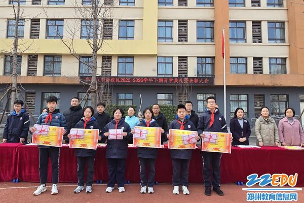 典礼在雄壮的国歌声中正式拉开帷幕。郑州八中新校区教学负责人孟光明宣读了上学期获奖班级和优秀个人名单。随后,校领导为学生代表颁发荣誉证书。