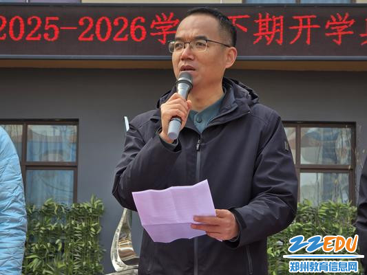 典礼尾声,郑州八中新校区执行校长郭晓军讲话,他希望全体同学要涵养“志存高远”的浩然正气,要砥砺“百折不挠”的昂扬锐气,要积淀“博雅笃行”的深厚才气,愿每一位同学都能将这三种“气”内化于心、外化于行,迎接挑战,以磅礴之力开创未来!他表示,全体教师将始终坚守教育初心,以爱心浇灌梦想,以耐心陪伴成长,以专业指引方向,做同学们追梦路上最坚实的后盾,用一言一行诠释师者担当。