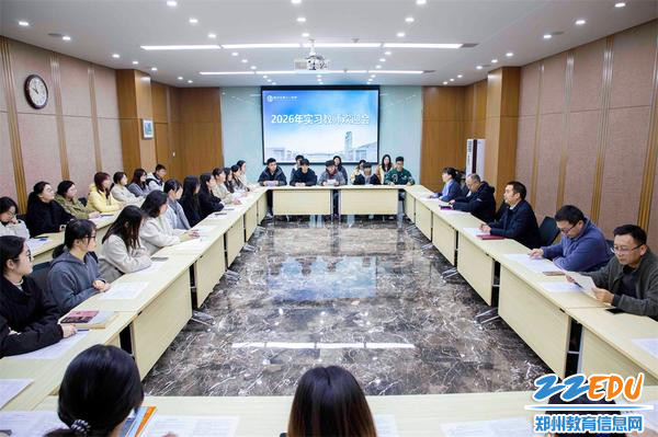 3月11日,郑州市第十一中学2026年实习教师欢迎会在博观楼举行。学校副校长弋松伟、政教处主任花书喜等学校领导出席会议,会议由该校教科室主任姜春春主持。