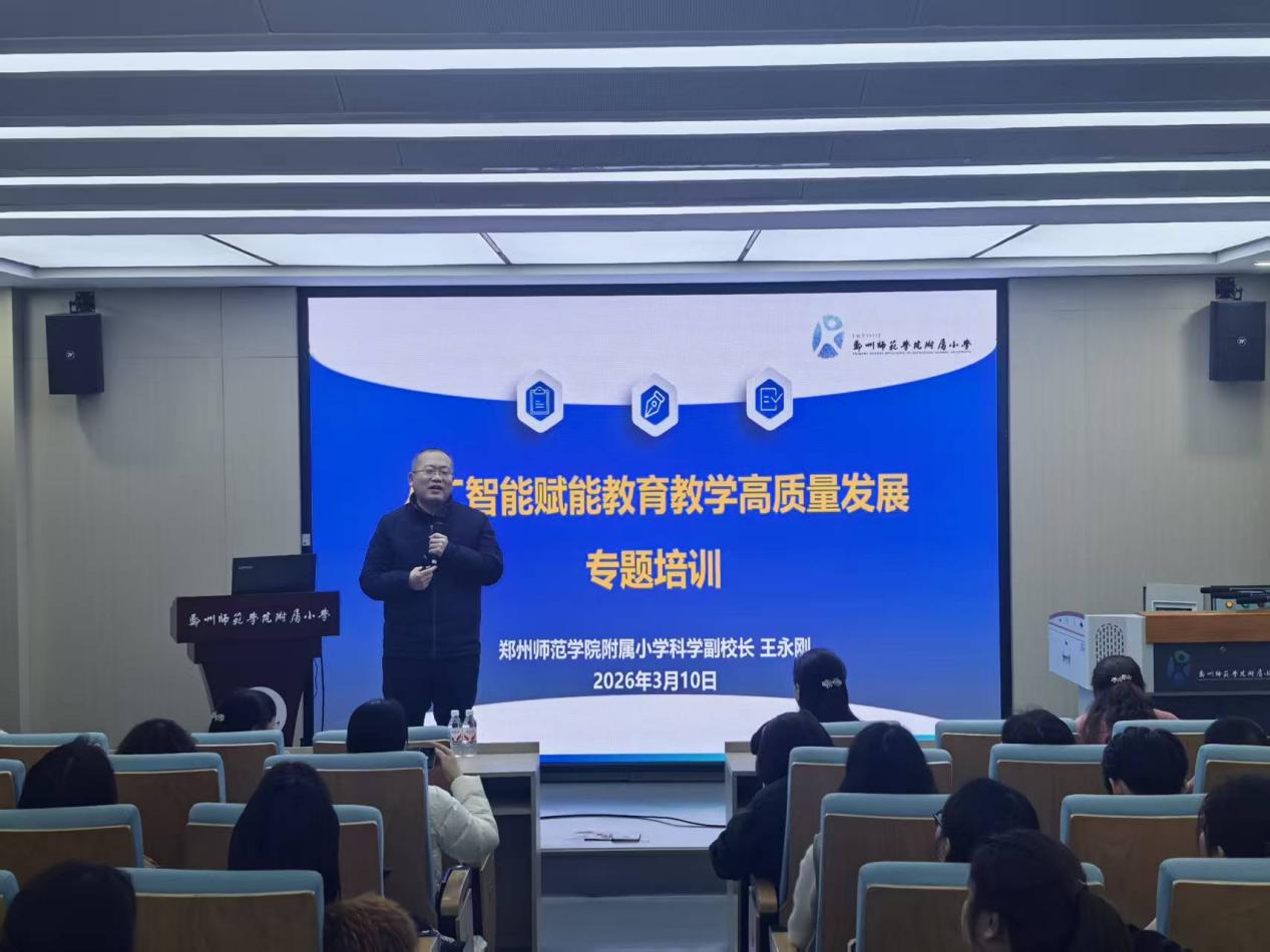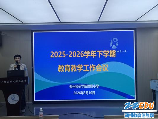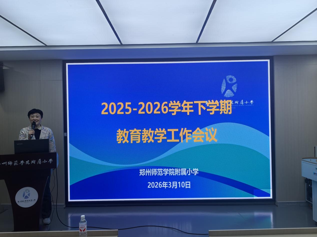 2026年3月10日,郑州师范学院附属小学召开新学期教育教学工作专题会议。本次会议特邀郑州师范学院教务处副处长、郑州师范学院附属小学副校长王永刚开展专题培训,同步部署新学期学生发展、课程建设、教师成长等重点工作,并举行师德师风承诺书签订仪式。学校副校长刘蕾主持会议,全体教职工参会。