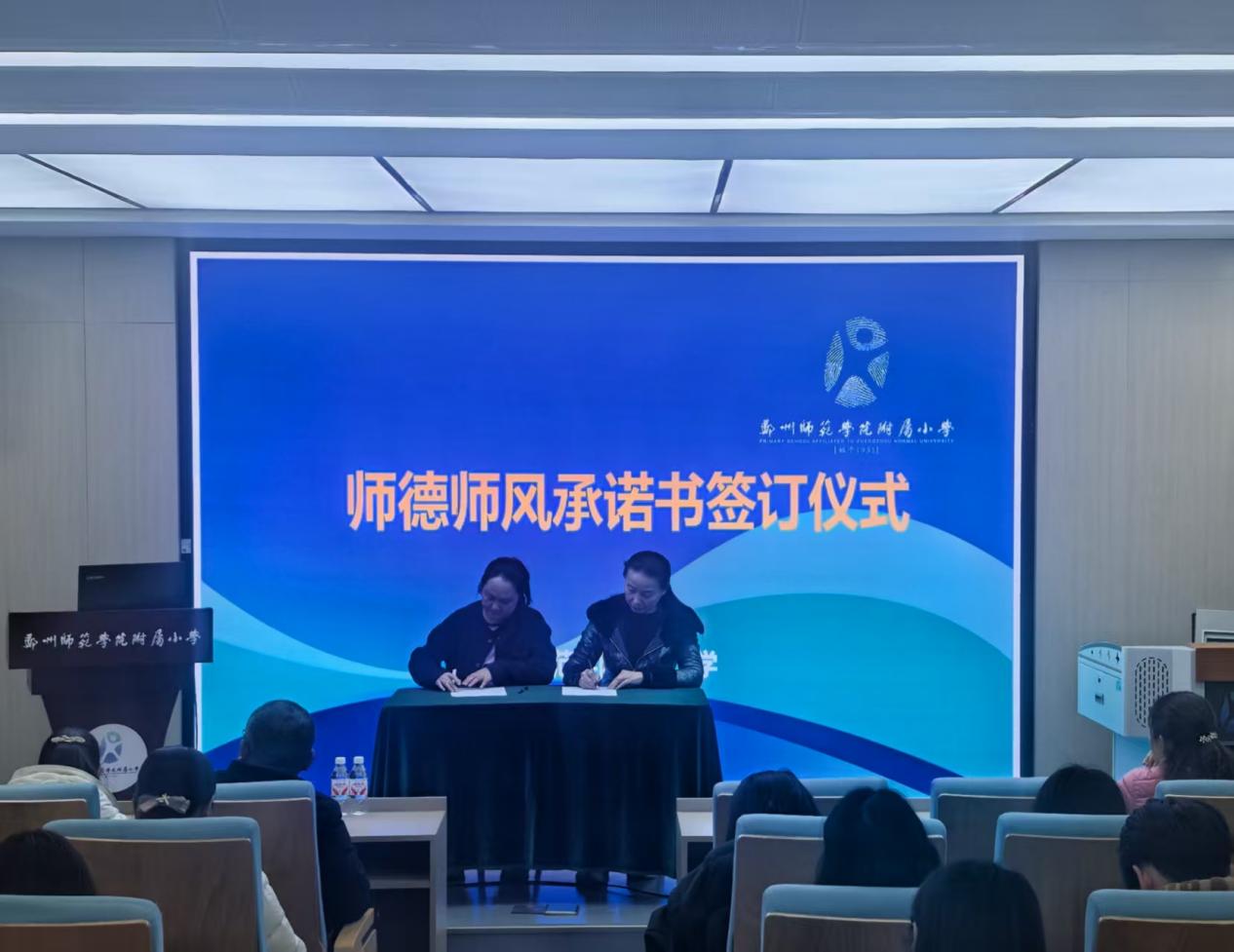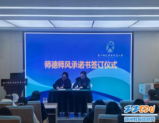 郑州师范学院附属小学党总支书记王慧与教师代表签订师德师风承诺书