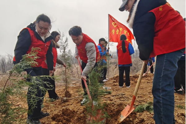 春风催新绿,植树正当时。在第48个植树节来临之际,为强化党建引领下的青少年劳动教育与生态环保意识,3月11日下午,郑州市商贸管理学校由学校团委副书记李拢拢带领教工团总支、工会教师代表及“商贸红”志愿服务队共30余名师生代表,积极参与“青春增绿中原,共建美丽郑州”2026年郑州青少年春季义务植树活动,以实际行动为绿城郑州增添盎然生机。