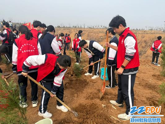 春染大地,生机勃发。3月11日下午,在第48个植树节来临之际,郑州24中团委组织团员青年代表,前往位于登封市石道乡陈家门村的郑州市全民义务植树基地,参加由共青团郑州市委、郑州市林业局等单位联合主办的黄河流域生态保护暨“美丽中国·青春行动”2026年郑州市青少年春季义务植树活动,以青春之力为中原添绿,为美丽郑州建设贡献青春力量。