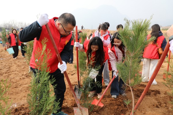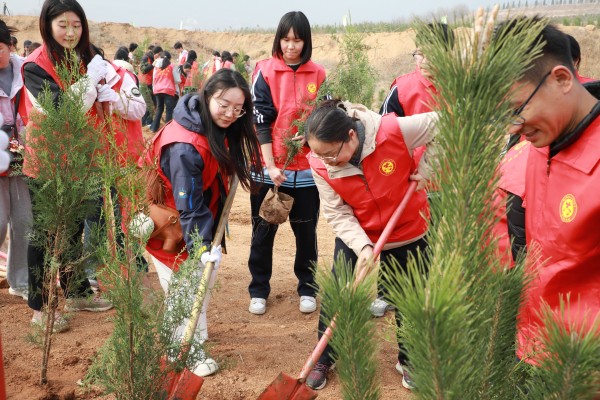 师生协作,为荒山添新绿