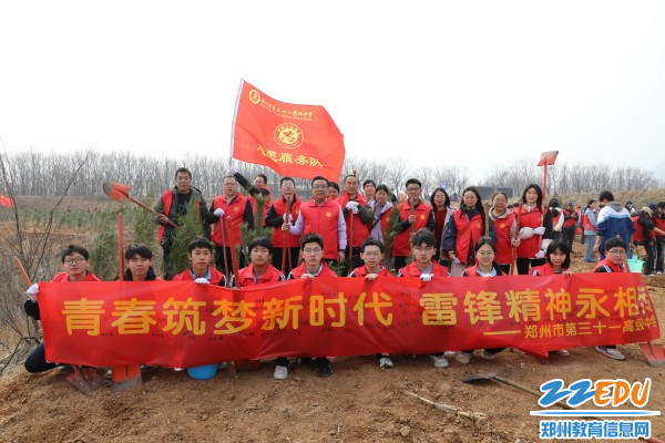 三月春风暖中原,植绿护绿正当时,雷锋精神永相传。 3月11日下午,郑州市第三十一高级中学积极响应团市委植树造绿号召,组织部分教师、学生,奔赴登封市石道乡陈家门村郑州市全民义务植树基地,植树添绿,用实际行动践行雷锋精神。