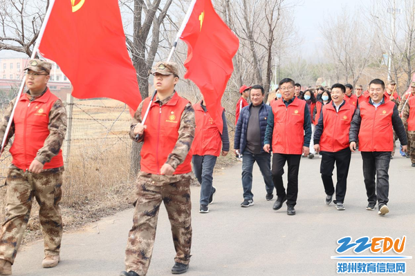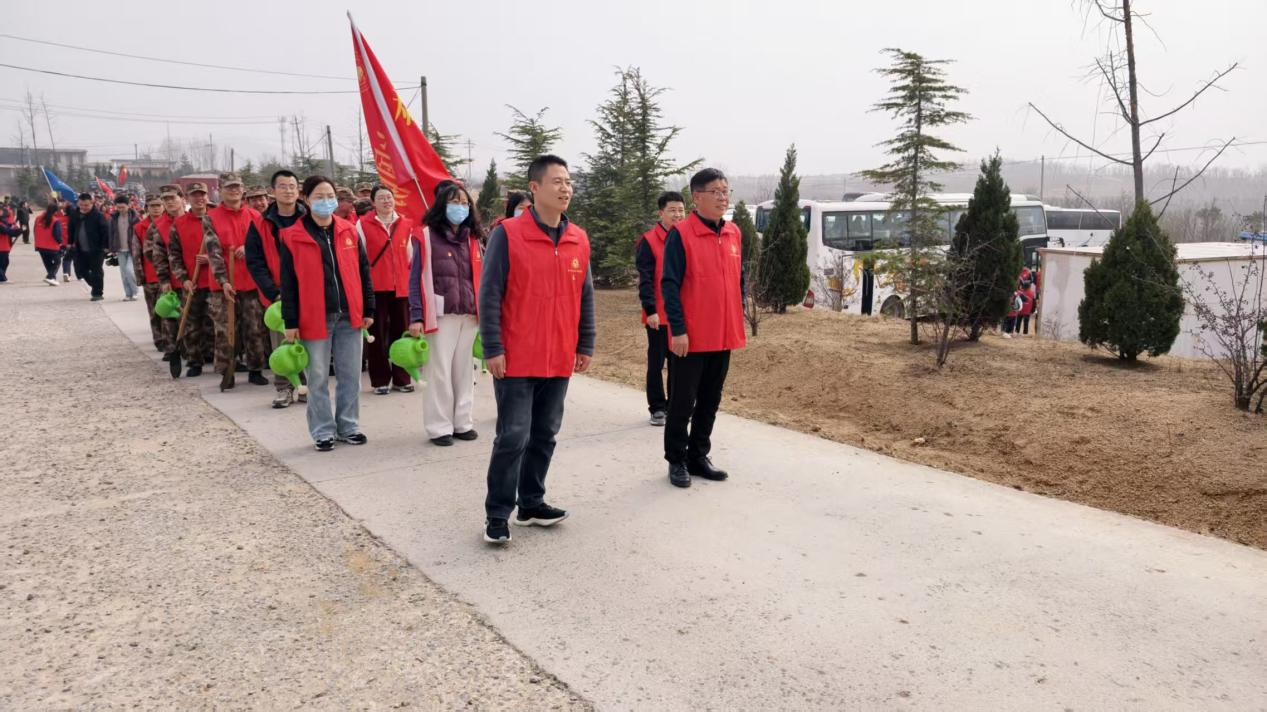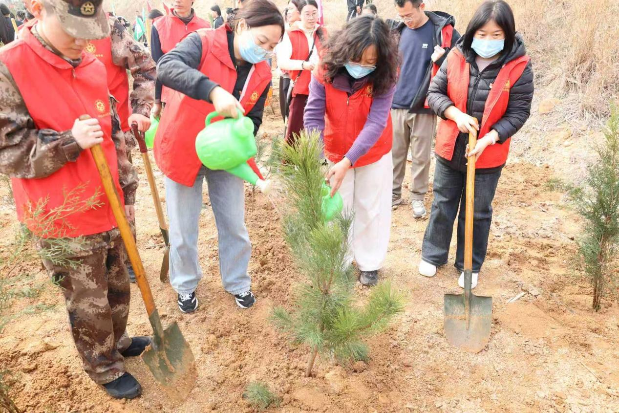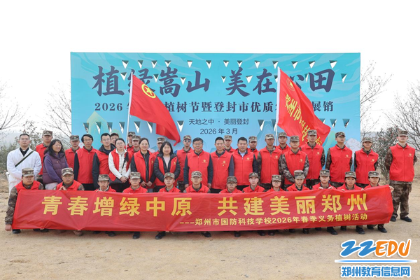 3月11日下午,郑州市国防科技学校积极响应共青团郑州市委号召,由郑州市国防科技学校副校长段峰带队,组织10名党员教师及30名学生志愿者前往登封市石道乡陈家门村郑州市全民义务植树基地,参与“青春增绿中原 共建美丽郑州”2026年春季义务植树活动,以实际行动践行绿色发展理念,为黄河流域生态保护注入青春力量。