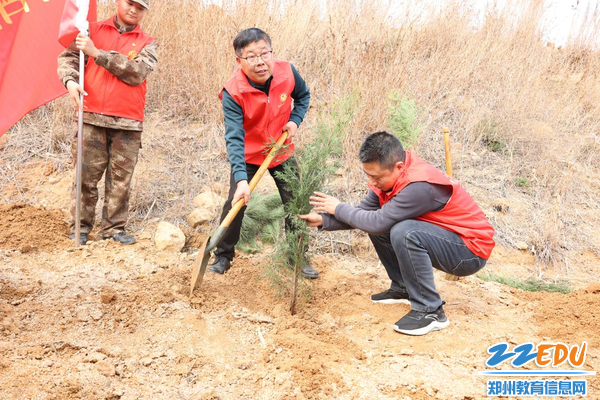 郑州市国防科技学校副校长段峰带队前往植树规划区域