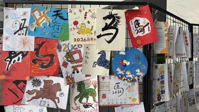 在郑州经开区智通小学的布展现场,绘画作品童趣盎然,学生们以马为媒,尽情挥洒艺术才华。马年手抄报版面设计精巧,图文并茂,既有马年文化科普,又有新年祝福感悟;马年形象绘画作品笔触细腻、风格多样,或写实生动,或童趣盎然,将对马年的期待与热爱融入笔墨之间,每一幅作品都闪耀着童真的光芒。