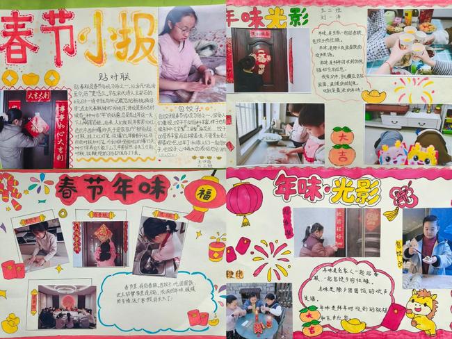 寒假是亲情相伴、德育浸润的美好时光。郑州市中牟新区东风路小学以“我们的节日·春节”为主题,开展“马力全开”系列实践活动。学生们用图文小报记录贴春联、剪窗花、包饺子等传统年俗,将中国特有的春节民俗与孝德教育融为一体,践行敬老爱亲的传统美德。