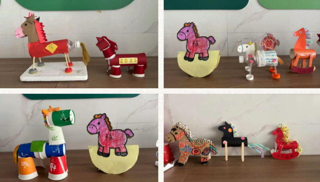 创意手工作品同样令人眼前一亮。废旧纸箱、瓶盖、彩纸等平凡物料,在学生们手中摇身一变,成为了形态各异的小马,或昂首奔腾,或悠然伫立,既践行了环保低碳的生活理念,更锻炼了动手实践与创新思维能力。