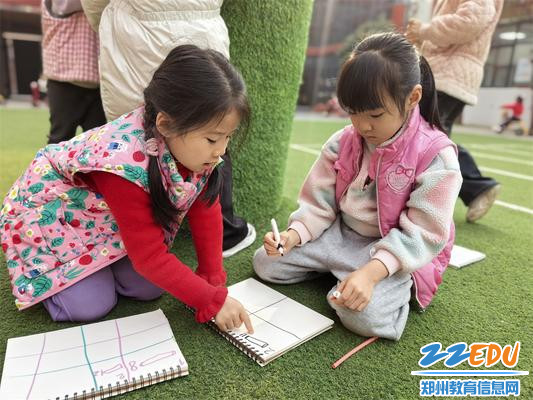 写生活动结束后,趣味十足的“我来量一量小树”活动随即展开。孩子们手持吸管等简易测量工具,踮着脚尖认真测量树干的粗细,伸长手臂仔细量测枝条的长度,还不忘将每一个测量结果认真记录在专属的观察手册上。在亲手动手测量的过程中,孩子们不仅直观了解了多种简易测量工具的使用方法,更在实践操作中真切感知到树木的生长变化,也为即将到来的幼小衔接,积累了宝贵的数学实践经验。