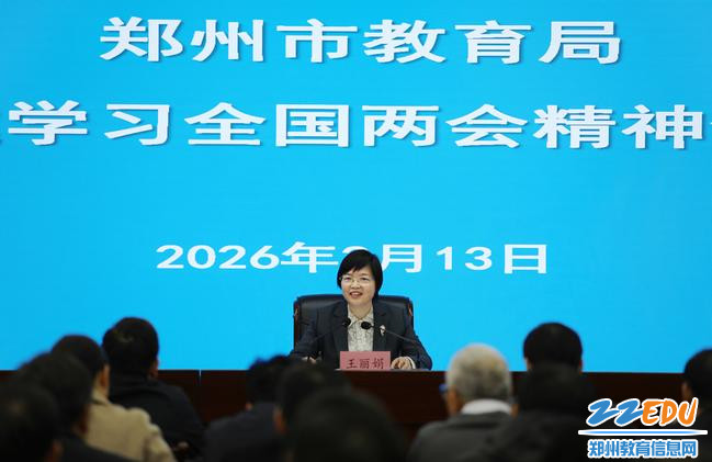 2026年3月13日上午,郑州市教育局党组理论学习中心组召开扩大会议,传达学习十四届全国人大四次会议和全国政协十四届四次会议精神,特别是习近平总书记在全国两会期间的重要讲话精神,全国人大代表,郑州市教育局党组书记、局长王丽娟主持会议并作专题报告。