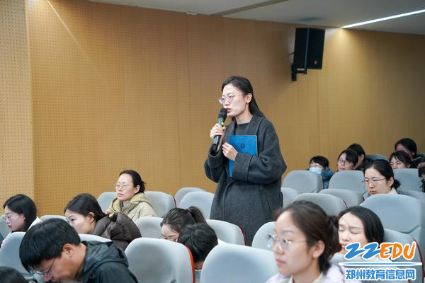 为增强实操指导性,胡远明与学校教师代表靳春蕾、彭珊珊等开展深度互动,围绕研究问题、研究内容、研究目标、命名规范等关键环节逐一拆解,结合具体案例讲解,明确选题需遵循“小切口、真问题、可落地”的原则,课题论证要做到逻辑清晰、重点突出,命名需精准凸显研究价值。互动环节中,多名教师主动举手分享科研思路,在专家的精准点拨下豁然开朗,会场内不时响起认同的掌声与会心的笑声。