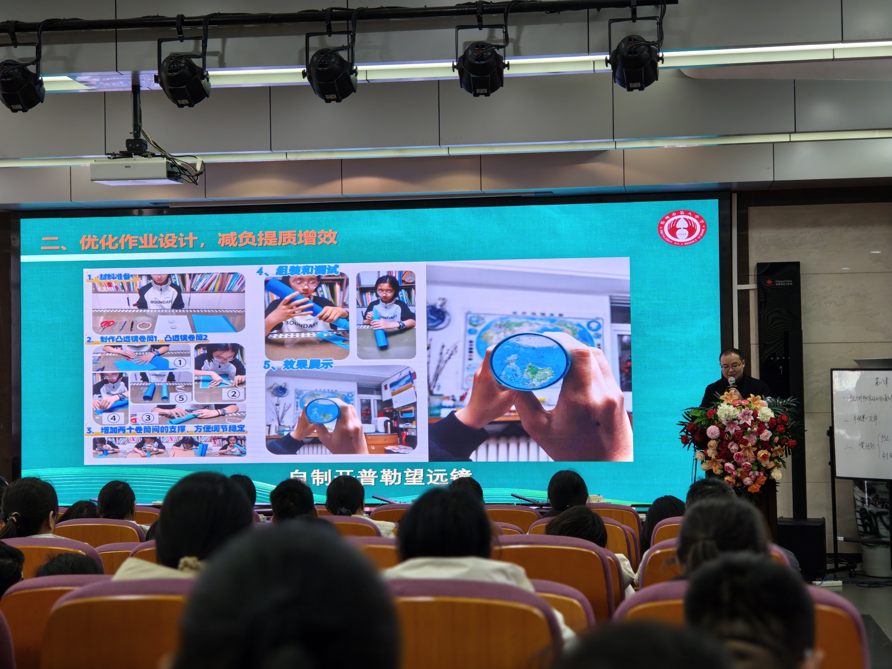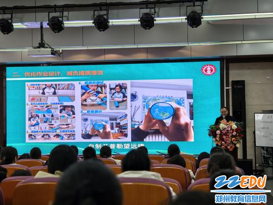 郑州市第八中学物理教研组组长喻景灿以《深耕学科建设,聚力教研发展》为题,分享了郑州市第八中学物理教研组的建设与成长经验。喻景灿从精研课标教材、优化作业设计、聚焦命题研究三个方面展示了郑州市第八中学物理组将教研工作融入日常,通过案例生动诠释了郑州市第八中学“传帮带”的优良传统。生动的案例与亮眼的成果,让郑州市第八中学物理教研组的建设经验成为区域同行学习的范例,赢得现场阵阵掌声。