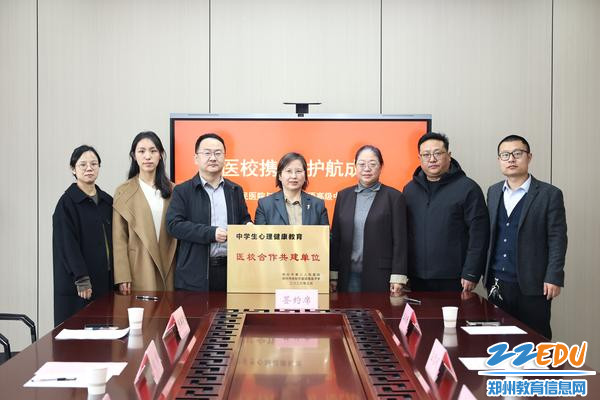 在热烈友好的氛围中,双方代表共同签署了《医校共建战略合作协议书》。根据协议,双方将在学生心理健康测评、心理危机干预、教师培训、家长课堂、临床实习等方面开展深度合作,郑州市第八人民医院将为郑州市扶轮外国语高级中学提供“绿色通道”服务,优先保障师生心理问题的诊断与转介治疗。