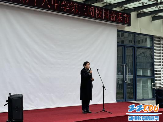 教师们的精彩演绎不仅展示了郑州市第十八中学教师队伍的多才多艺,更用实际行动鼓励学生勇敢站上舞台。随后,郑州市第十八中学党委书记段亚萍来到同学们中间,为这个崭新的小舞台送上温暖的寄语。她表示,从今天起,同学们有了一个“属于同学们自己的、想秀就秀的小天地”。她深情地说:“我认为,一所高中,除了书声琅琅,还应该有歌声嘹亮,有青春的张扬与梦想。这个舞台不大,但它容得下所有的热爱。”段亚萍鼓励在场的学生,无论是一展歌喉,还是表演相声,哪怕只是一段即兴的舞蹈,只要有勇气站上来,这里就是他们的主场。