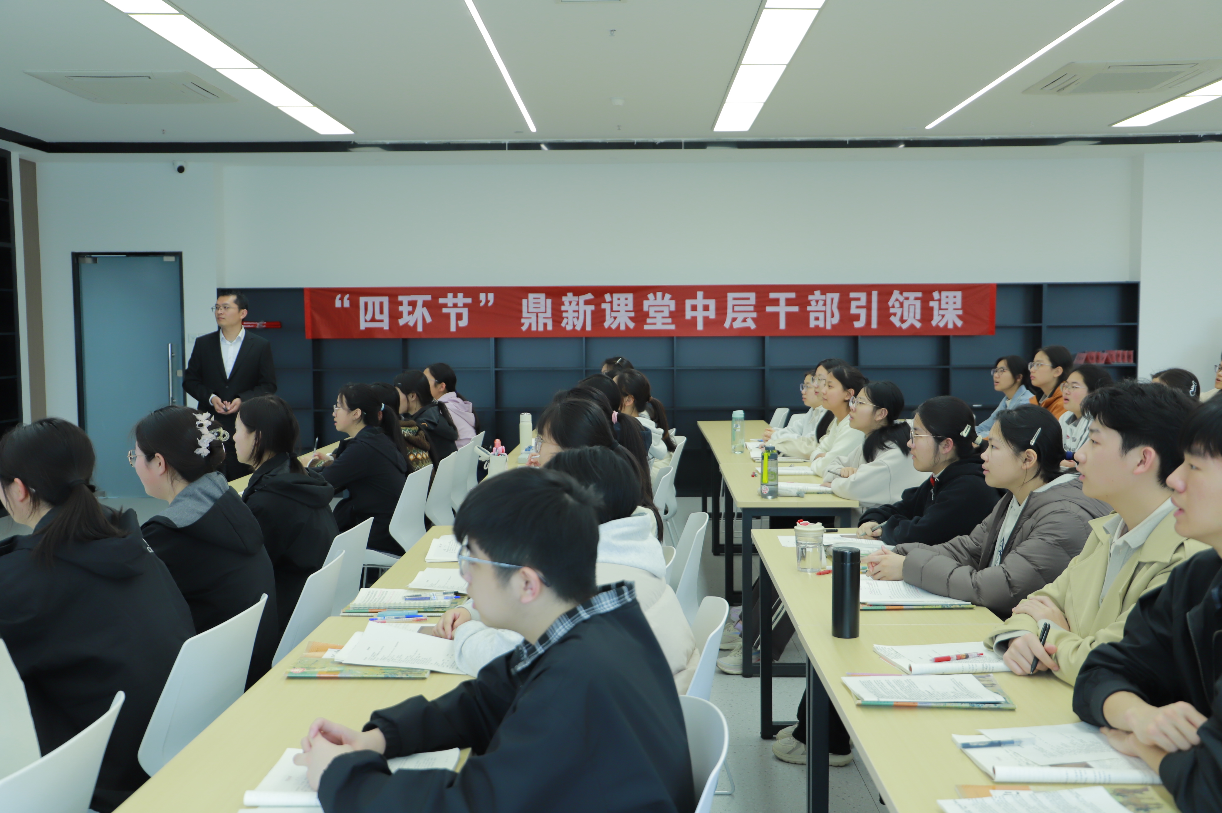 为深入贯彻“双新”实施要求,扎实推进核心素养落地课堂,深化学校“四环节”(复习—新授—检测—预习)精准教学改革,2026年3月23日,郑州市第十六高级中学“四环节”鼎新课堂中层干部引领课第一阶段在图书馆合班教室、录播教室开展。
