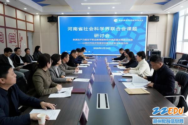 3月23日,2025年度河南省社会科学界联合会课题《新质生产力驱动下职业教育服务经济高质量发展路径研究》研讨会在郑州市经济贸易学校东校区举行。郑州市教育科学规划与评估中心党总支书记、主任寇爽,副主任郝江玉,职业教育教学研究室主任魏雪等课题组成员,与郑州市经济贸易学校党委书记牛红国、校长丁向群等共同参与研讨。