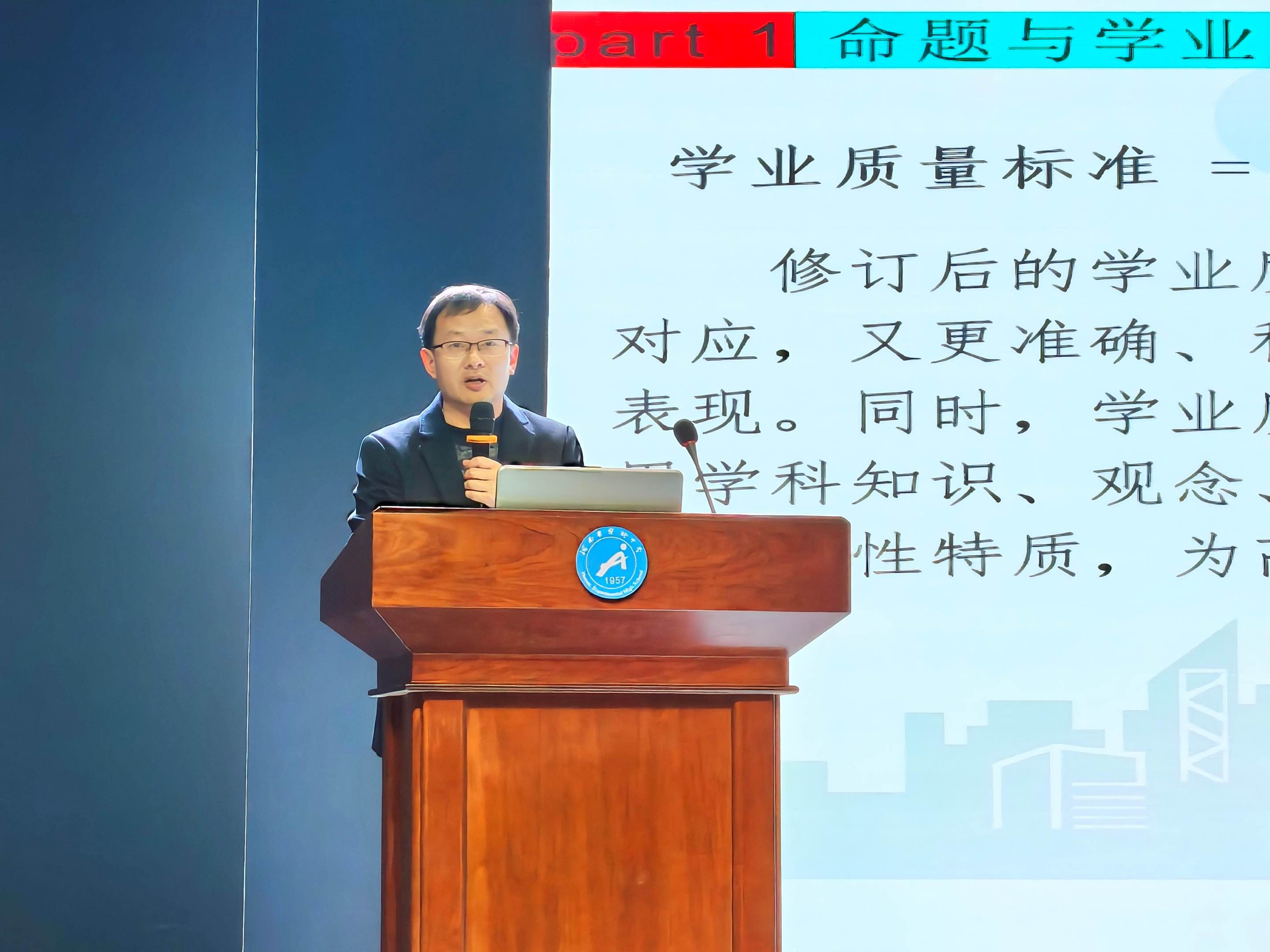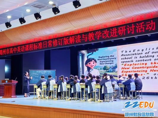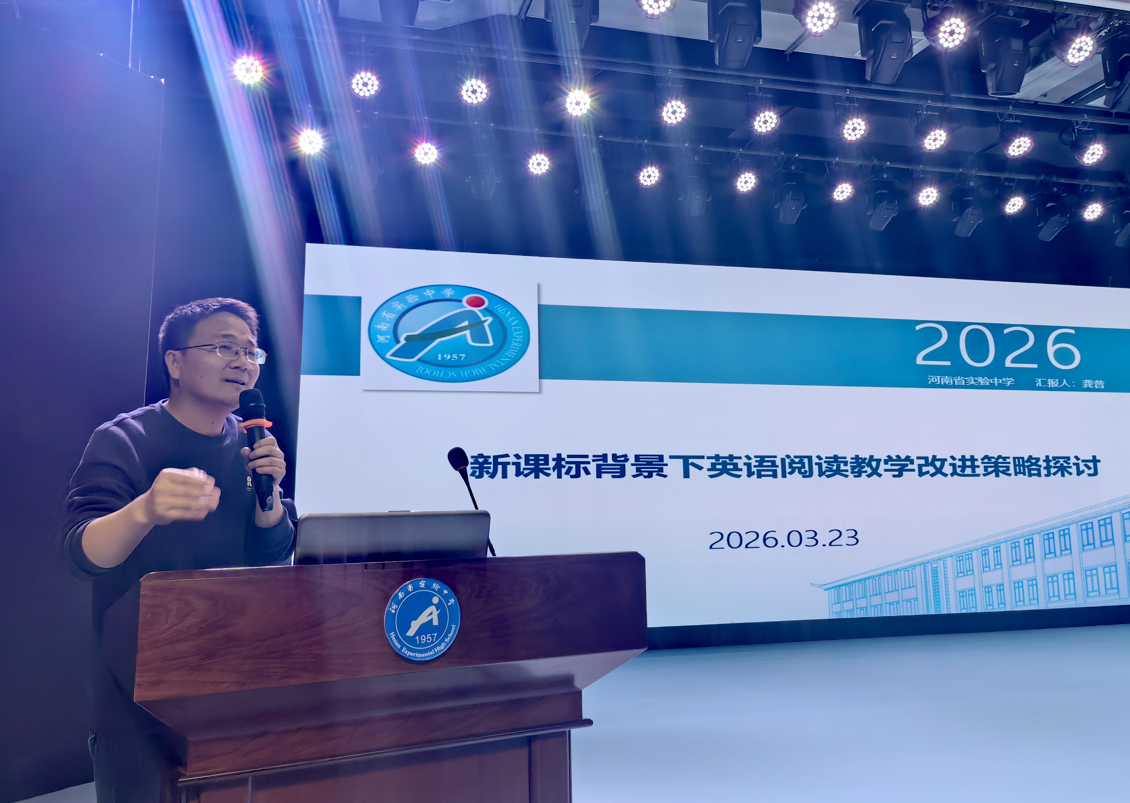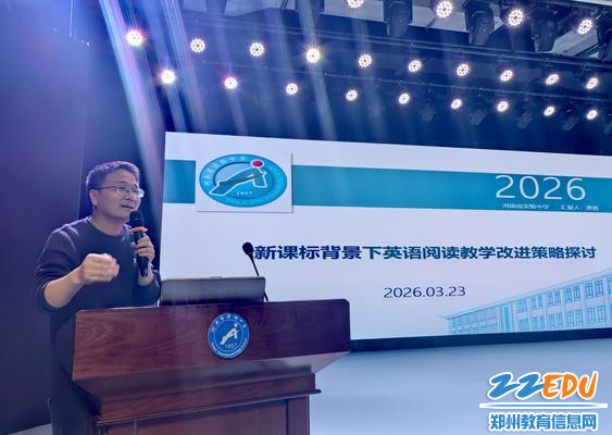 3月23日下午,郑州市高中英语课程标准日常修订版解读与教学改进研讨活动在河南省实验中学(文化路校区)举行,学校高中英语教研组长张怀俊主持。来自各区县(市)教研员、中心组成员、高中教研共同体负责人、教研专家库成员及市直高中教研组长300余名齐聚一堂,共研课标新变化,共话教学新路径。