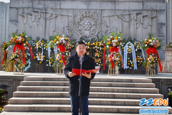 学校学生代表苏伊帆在发言中深情表达了对英烈们的深切追思与崇高敬仰,并郑重承诺将以英烈为榜样,铭记历史、传承精神,在校园里勤学笃行、锤炼专业本领,在生活中严于律己、传承优良作风,以青春之力勇担新时代青年的责任与使命。郑州市商贸管理学校副校长刘诗鹏在讲话中强调,革命先烈是民族的脊梁,英烈精神是激励我们前行的强大力量,此次“清明祭英烈”主题活动,旨在引导学生铭记英烈功勋、传承红色血脉,希望全体同学将对英烈的缅怀之情,转化为奋发向上的奋斗动力,努力成长为有理想、敢担当、能吃苦、肯奋斗的新时代好青年。