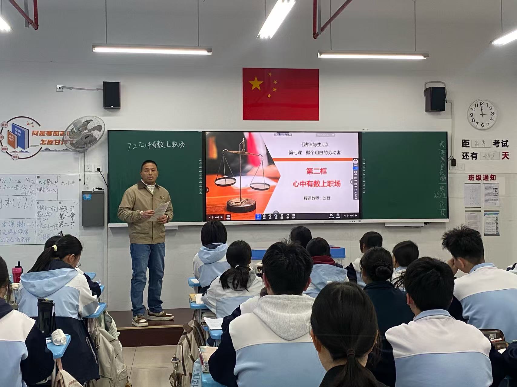 为充分发挥骨干教师示范引领作用,深化思政课教学改革,提升课堂教学质量,3月25日,郑州市第四十四高级中学骨干教师引领课活动如期开展。政治组刘登老师执教选择性必修二《法律与生活》第七课第二框《心中有数上职场》,学校领导与政治组全体教师到场听课、评课,活动有序高效、研讨深入。
