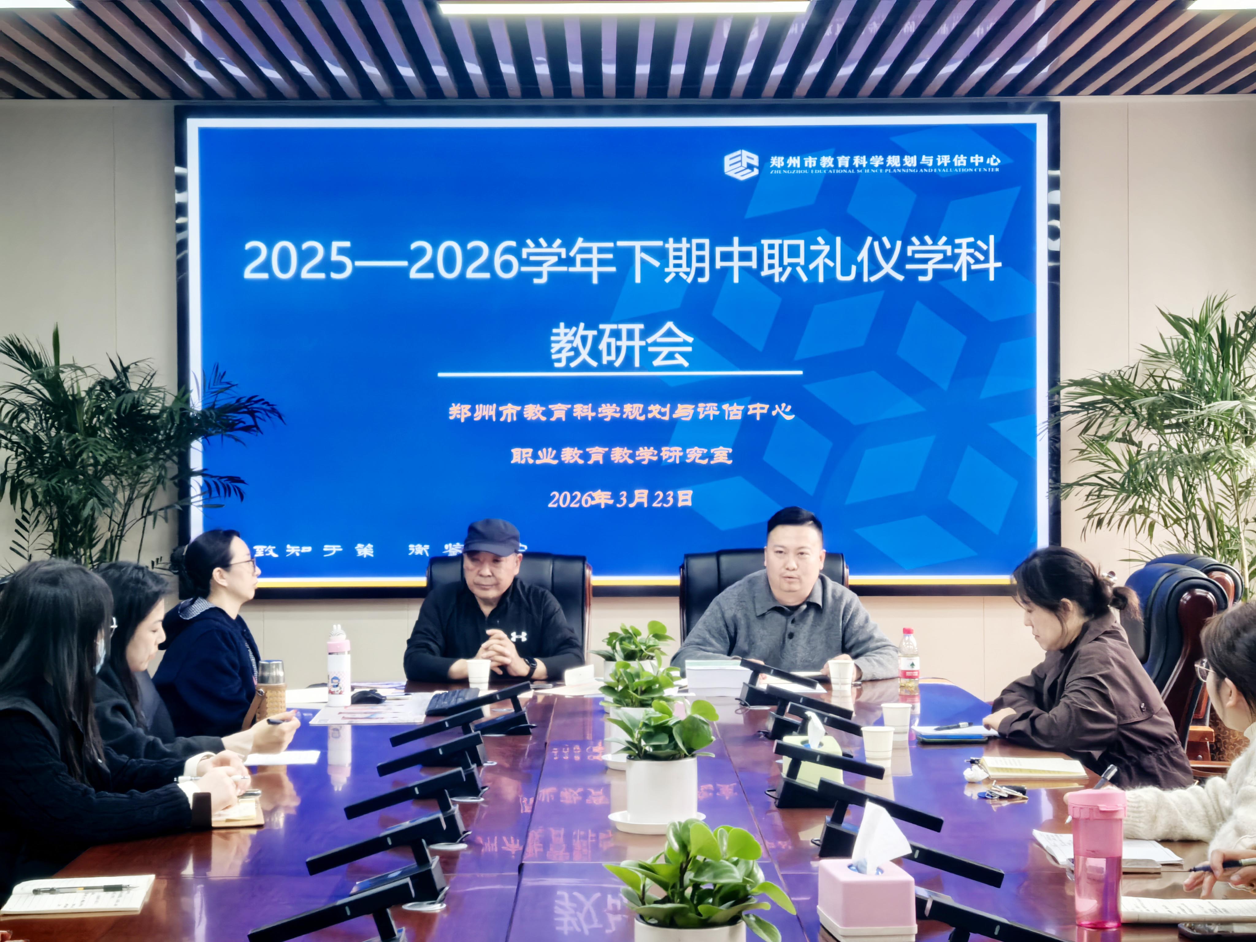 为深入贯彻职业教育改革新要求,推动礼仪教育与产业需求深度对接,提升中职礼仪教学质量与人才培养实效,3月24日,郑州市中职学校礼仪学科中心组教研会在郑州市科技工业学校举行。全市各中职学校礼仪学科骨干教师齐聚一堂,凝聚教研共识,明确发展路径,共同探索中职礼仪教育创新发展路径。郑州市教育科学规划与评估中心职业教育教学研究室教研员徐二森、杨尚霖参加会议。