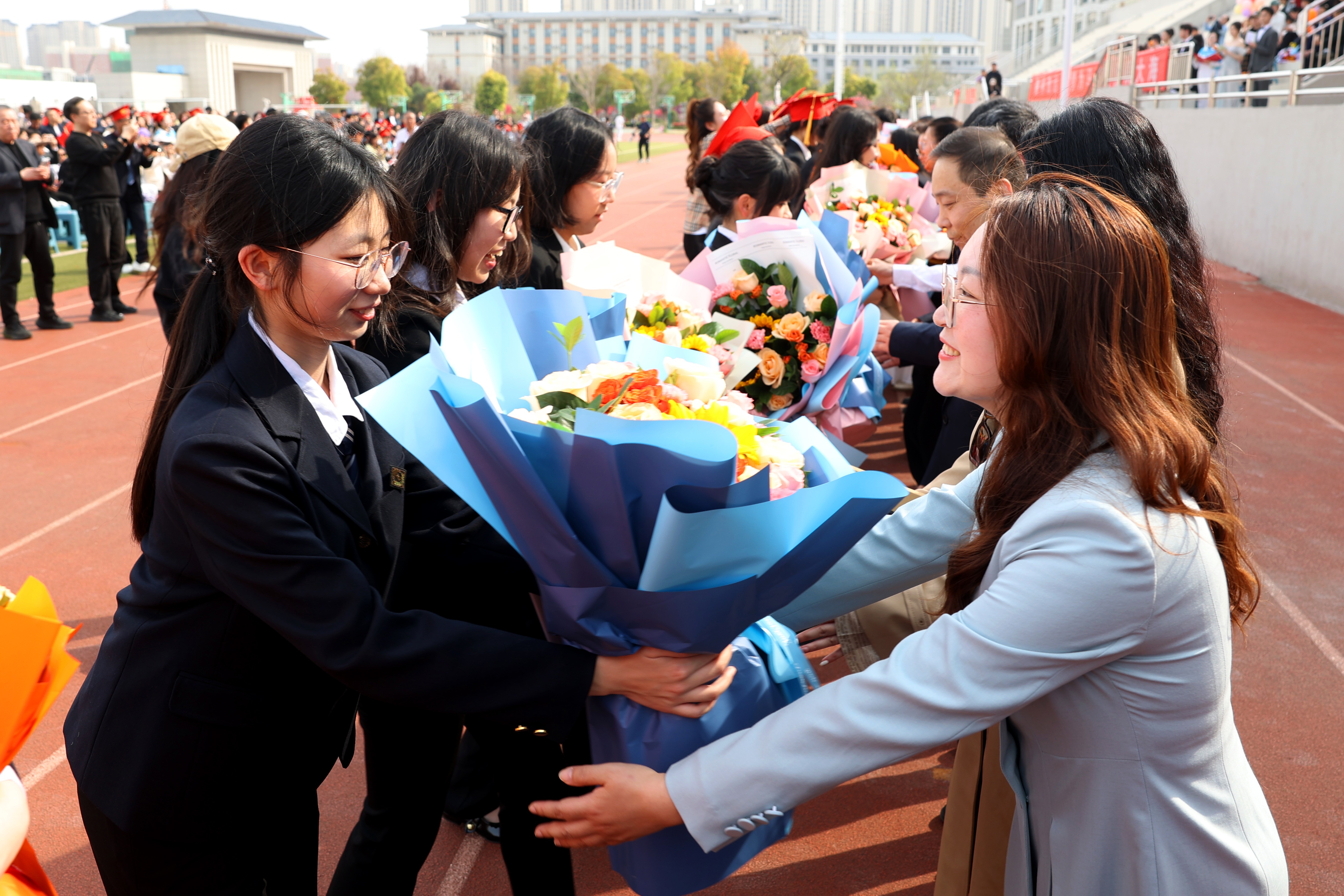 家长代表登台致辞,深情回顾孩子在校三年的成长蜕变,同时寄语在场学子,珍惜青春韶华,脚踏实地、笃行实干,以担当诠释初心,以拼搏成就理想,不负青春热忱,不负时代使命。