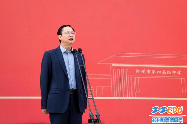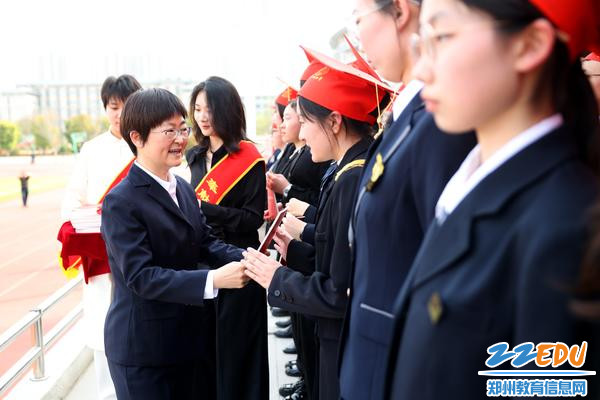郑州市第四高级中学校长谢悦向学生代表郑重颁发《中华人民共和国宪法》,谢悦勉励学子们,要尊崇宪法、敬畏法律,恪守公民义务,勇担时代重任,立志成为有理想、有本领、有担当的新时代青年。